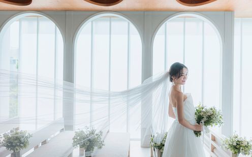 曲線美が彩る開放的な装いは、お二人の物語を心に響く感謝の日に。