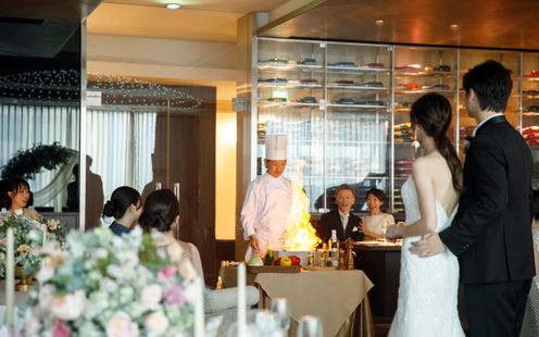 クチコミで好評の五感で楽しめる料理パフォーマンスにゲストの期待も高まる!