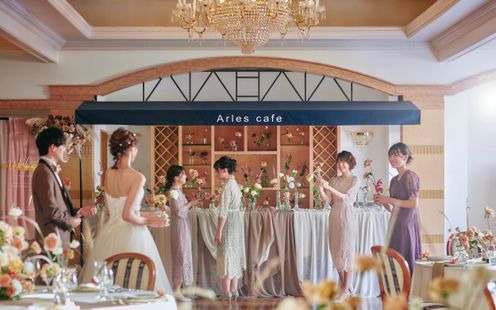 気品と優雅さに満ちたスタイリッシュな世界。南フランスのカフェをイメージしたパーティ会場