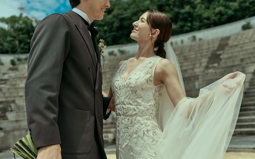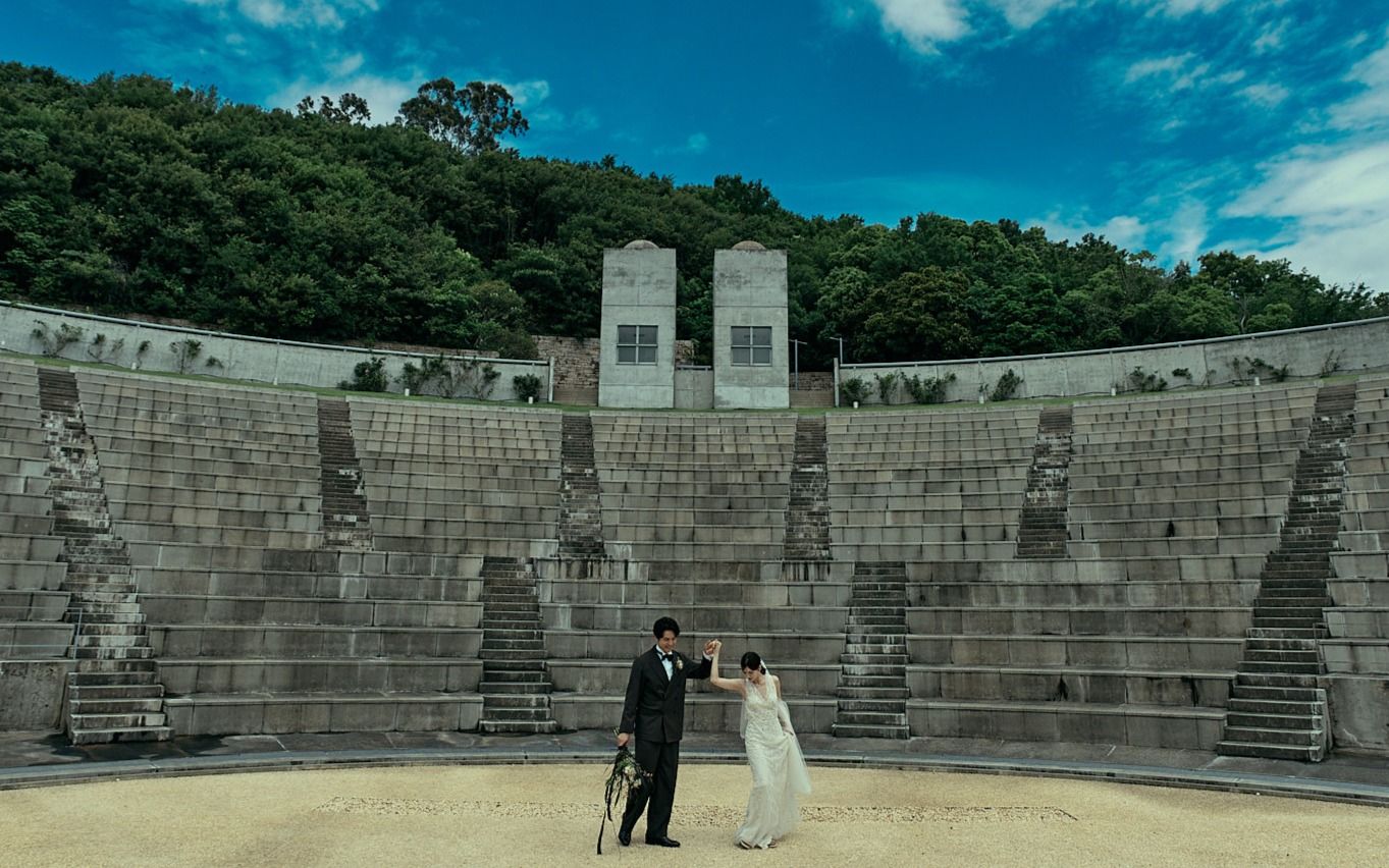 世界的建築家・安藤忠雄氏が手がけた円形劇場。空と風と緑が祝福してくれるセレモニーは、まさに“自然と一体になる”特別なひととき。フォトウエディングや前撮りでもお使いいただけます◎