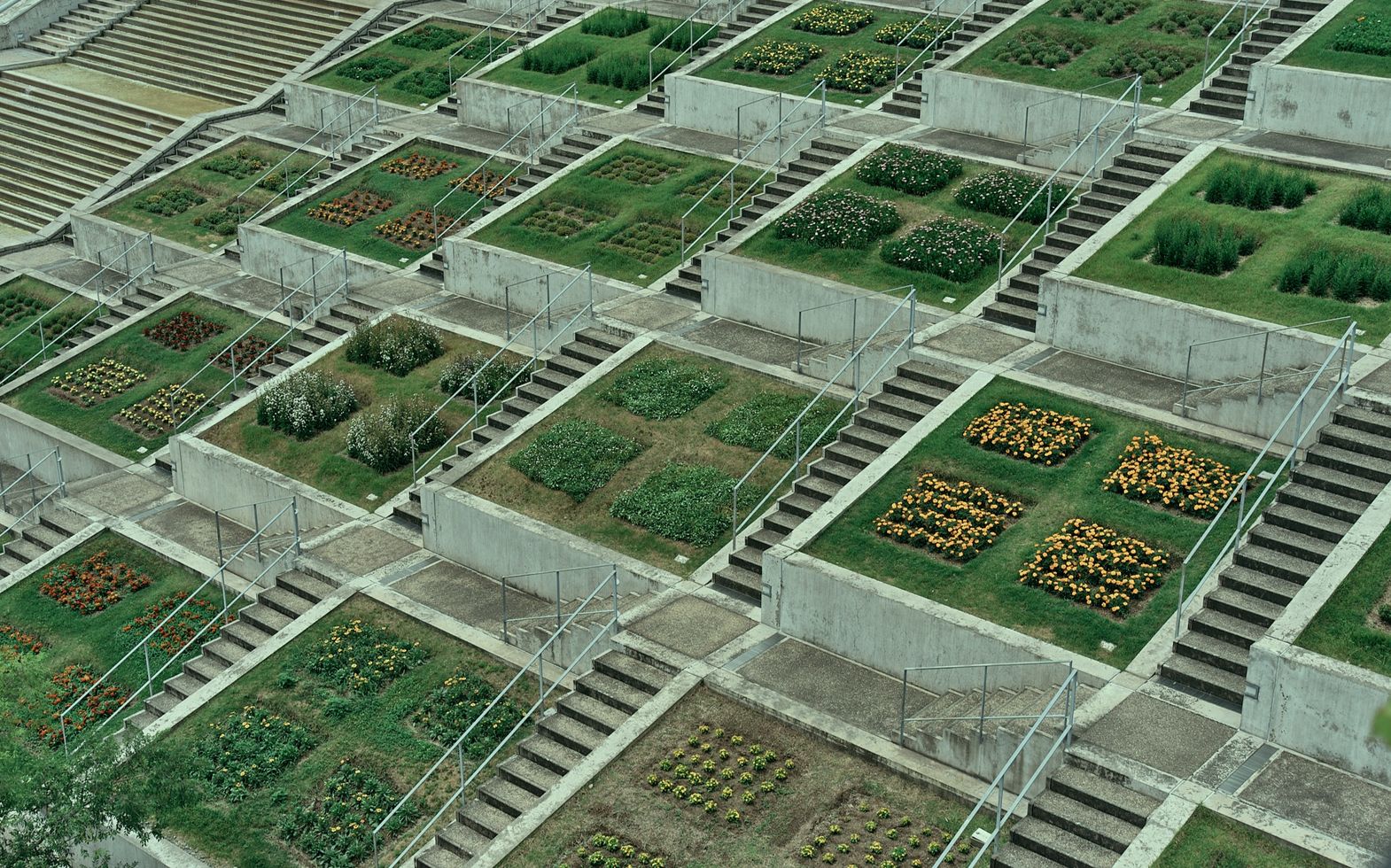 山の斜面に沿って階段状に並ぶ100の花壇「百段苑」。上からも下からも楽しめる美しいデザインが魅力です。四季折々の花々が彩りを変え、訪れるたびに新しい表情を見せてくれます。