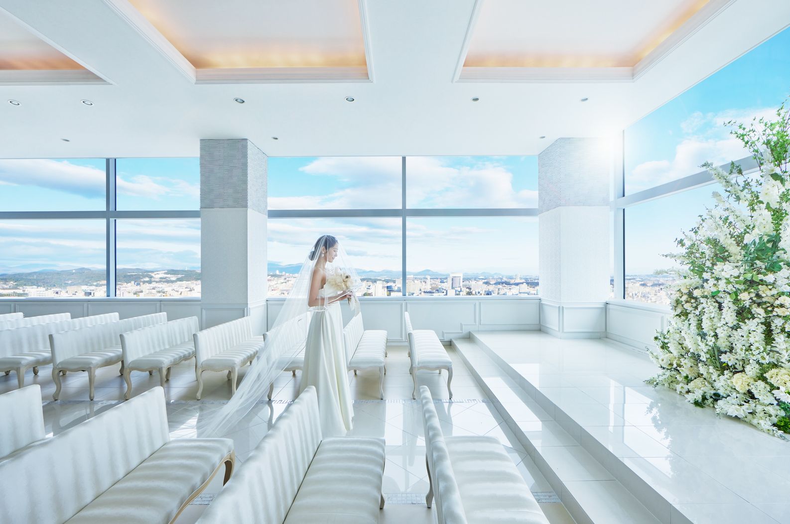 02.【地上135m!天空のチャペル】大パノラマ×花嫁が美しく映えるピュアホワイトの空間