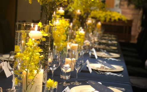 ふたりのウェディングのテーマや、季節感、昼夜の時間の移り変わりにあわせたセンスあふれるコーディネートをご提案します。好きなカラーや、花材などまずは憧れのイメージをお聞かせください。ふたりならではの世界観を創り上げます。