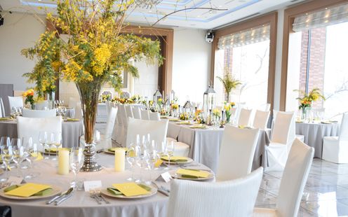 気心の知れた家族だけで行うファミリーウェデイングをはじめ、30~40名程度の少人数パーティにぴったりな空間<銀河>。開放感あふれる全天候型のウッドテラス付きなので、コース料理を楽しんだ後には、オープンエアの空間で歓談タイムを設けることも可能です。ゲストと動きのあるパーティを叶えて!