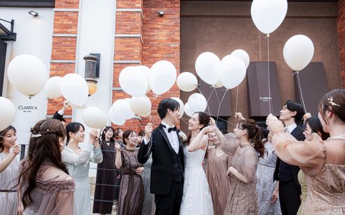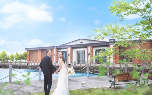 西大分のウォーターフロントに位置するクラシカ。なんと言っても青い空と陽光を受けて煌く海、ベイエリアならではの静かで心地よいロケーションが魅力。空と海の景色に赤レンガの外観が美しく映える、まるで外国映画の世界にいるような特別感のあるウェディングステージです。時間帯ごとにその表情を変え、ロマンチックな雰囲気のナイトウエディングも人気。ここでしか叶わない演出で、ゲストにサプライズも。会場のすぐそばには「かんたん港園」があり、素敵なロケーションフォトも叶います。