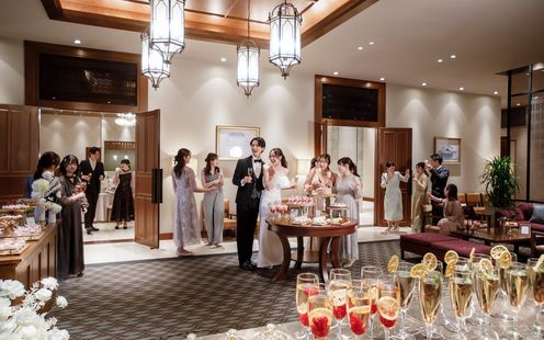 結婚式が始まる前にもゲストに寛ぎの時間を。受付から挙式までの待ち時間さえも優雅にお過ごしいただけます。