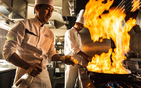 瀬戸内の温暖な気候、暖流と寒流がぶつかり合う海、豊かな栄養を蓄える山々に囲まれた食の宝庫、大分県。クラシカでは、豊後の自然の恵みをフレンチ・イタリアンの技法で仕上げたシェフ渾身の「豊後フレンチ」でゲストをもてなします。現地に足を運び選んだこだわりの食材、国内外の受賞歴を誇る総料理長が率いる食のプロフェッショナルチームが生み出す逸品、そして一番美味しい温度でオープンキッチンから提供されるサービスが織りなす、贅沢なフルコースをお楽しみください。