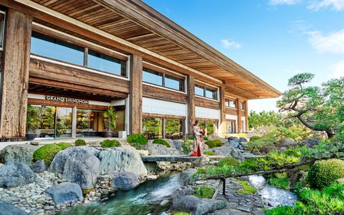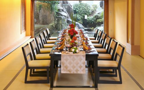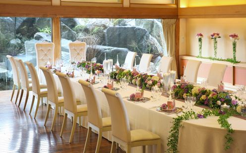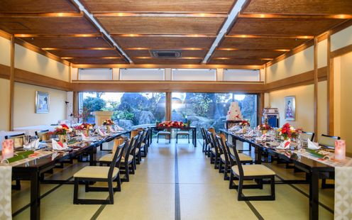 本館エントランス横には、清らかな水が流れる伝統美に彩られた日本庭園があり、祝宴のひとときに雅やかな情趣を添えます。