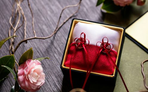 凜とした和の伝統美がおふたりを包み込む空間では、 雅楽の調べが響き渡る中、格式のある厳かな 神前式が執り行われます。約70名列席可能という スケール感のある広さを誇ります。永遠の契りを結ぶ三三九度や、榊を祭壇へ奉納する玉串奉奠など古式ゆかしい儀式の一つひとつがおふたりの絆を深めていきます。