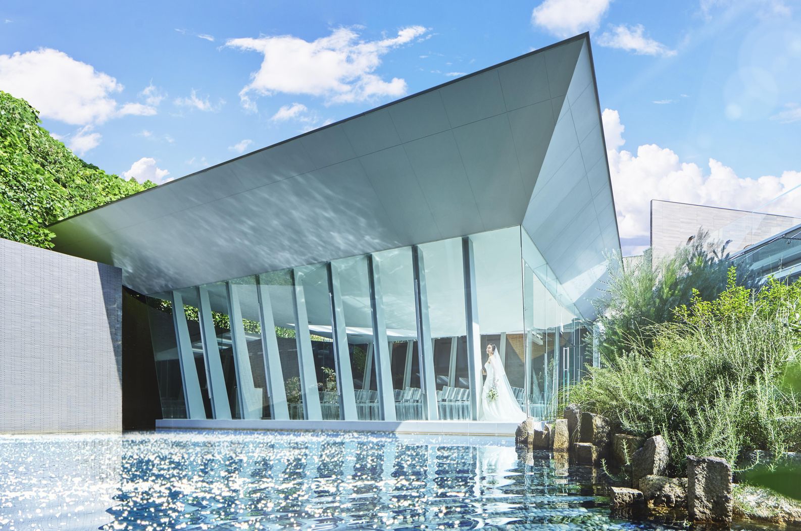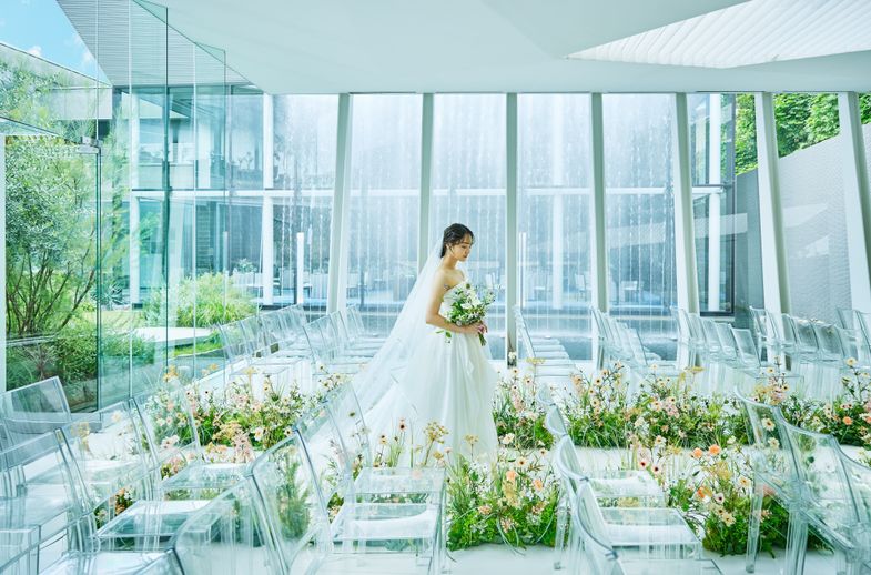 02.<水上のクリスタルチャペル>360度ガラス張りで純白ドレスの花嫁を美しく魅せる