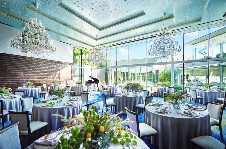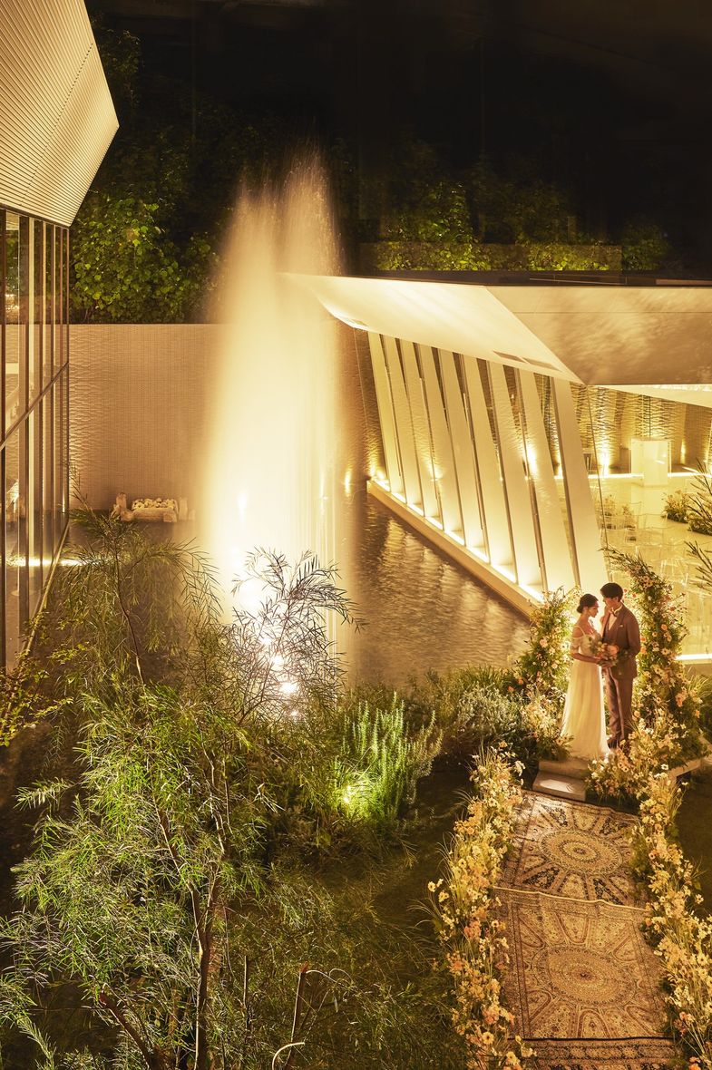 室内だけど開放的な空間で、式場の中央にある噴水が見えてとても綺麗な会場です。