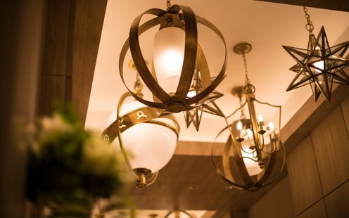 シーリングシャンデリアから降り注ぐ、明るくやわらかな光に包まれながら、和やかなひとときを過ごせます。ほどよい広さの会場は、ゲストとの距離が自然と近づき、アットホームな雰囲気に。和・洋どちらのコーディネートも映え、ふたりらしくセッティングできます。