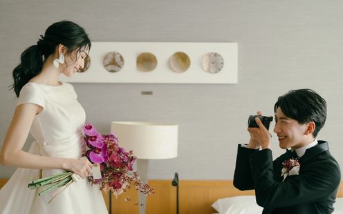 新郎新婦やゲストが、結婚式の前後もゆっくり滞在できるのが、ホテルならではの魅力。高層フロアの客室で迎える朝から、一泊二日のウェディングが始まります。
