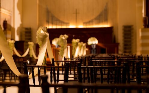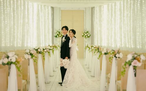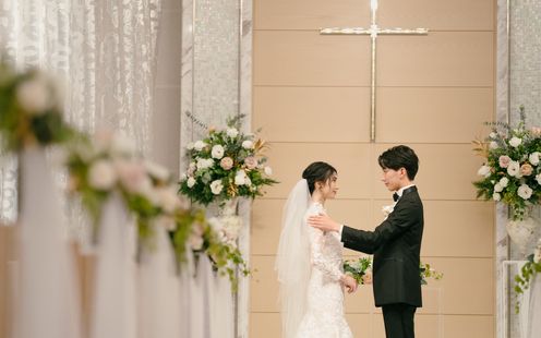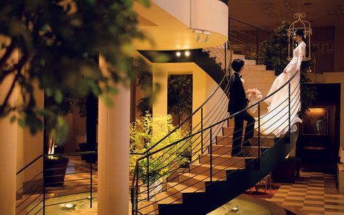 開放感あふれるロビーチャペル。パイプオルガンの荘厳な音色と、聖歌隊による清らかな歌声がロビー全体に響き渡り、誓いの瞬間をより印象深く演出します。多くの祝福に見守られながら、心に残る感動的なセレモニーを叶えて。