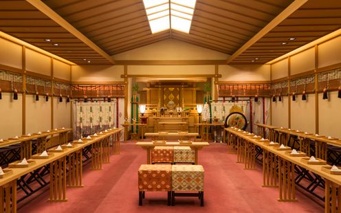 白木造りの凛とした佇まいが心を静かに整える。時を経ても色褪せない、古式ゆかしい誓いを