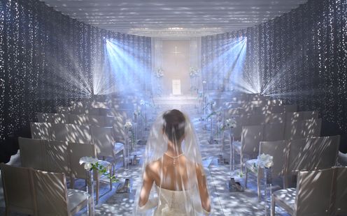 フランス語で「大いなる光」を意味する名の通り、清らかな光が満ちる白大理石のチャペルです。光の演出は、ドラマチックにも、きらびやかにも、華やかにも変化。光のベールに包まれる幻想的なスタイルと、木漏れ日が舞い降りるような美しいスタイル、異なる2つの演出から選べます。