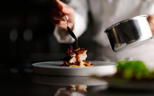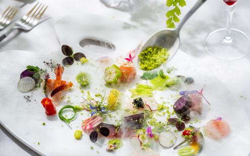 決まったコースが存在しないのが当館の特徴。フランス料理・日本料理・中国料理・デザート……それぞれの分野で研鑽を積んだ一流のシェフが集い、特別な料理を作り上げます。「2パターンのフルコースを提案し、試食を重ねながら選び抜いて完成させた」というケースも。調理法や盛り付け、器選びに至るまで細部にこだわり、記憶に残るおもてなしを叶えます。