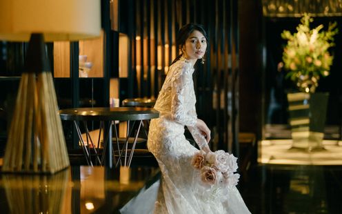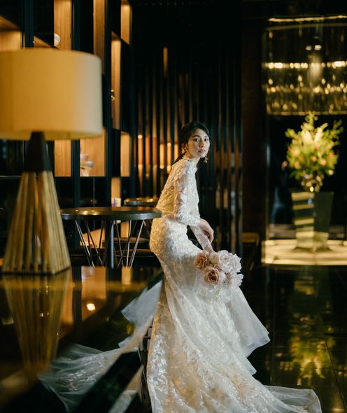 トレンドを押さえたドレスから上質な和装まで、幅広い選択肢の中から、ふたりの想いや会場の雰囲気に寄り添ったスタイリングが叶います。経験豊かなプロが丁寧にサポートし、シルエットや素材感、細かなこだわりまでしっかりヒアリング。ヘアメイクやコーディネートの微調整にも柔軟に対応し、納得のいく仕上がりへと導きます。