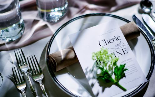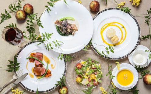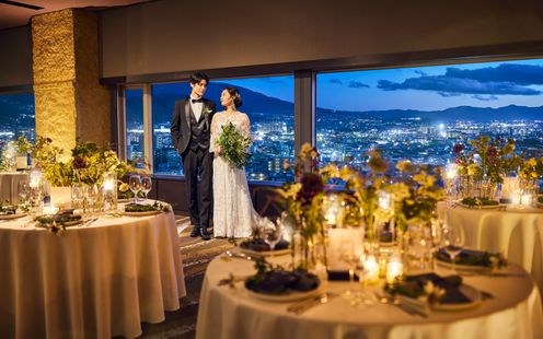 雄大な北アルプスと眼下に広がる街並みをゲストにも堪能してもらえる、そんな極上なひとときを。味わい深い木や石などの自然素材を使用した、ブラウンを基調とするシックな雰囲気は、シンプルでかっこいいレストランウエディングをお考えのおふたりにおすすめです。地元の食材を活かした季節感溢れるお料理は、グルメなゲストも虜にさせる、フレンチをベースにした創作料理 “モダンキュイジーヌ”。上質なお料理と、行き届いたきめ細やかなサービスで、大切なゲストへ最高のおもてなしを。