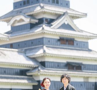 当日、着ることができない和装姿や少し遠方での撮影など前撮りではロケーション撮影も人気です。国宝松本城を背景にした記念撮影も叶います。