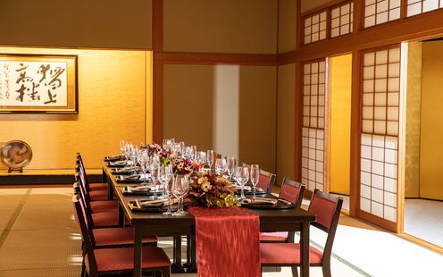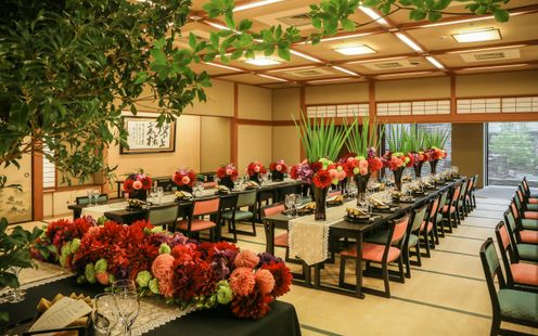 街中にいるのが嘘のよう静かな庭園を眺めながらくつろいでいただけます。料理は、安曇野や信州の風味いっぱいの旬菜を盛り込んだ本格会席。料理長の繊細な技で仕上げた祝膳は、門出の日にふさわしい極上の会席膳。ご年配の方はもちろん、若い方にも評判の深志楼自慢の『祝いの膳』です。今では少ない料亭スタイルを継承し、結納や顔合わせなどの様々なお祝いの席にも ご利用頂けます。結納のお席では、今ではお立てになることが少なくなったご媒酌人に代わり、御両家の取り交しをスタッフがお手伝いさせていただきます。風雅な日本庭園を望む会場で、 ゆったりと流れる時間を楽しみながら月ごとに変わる会席料理をご堪能ください。
