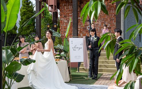 ホテルでありながらガーデン付の独立型チャペルがあるのも大きな魅力。開放感あふれるガーデンでは、挙式後のアフターセレモニーやゲストとの集合写真、ブーケトス、フォトブース、ウエルカムパーティなどオリジナリティあふれる多彩な演出が叶います。ぜひご相談ください。