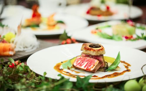 お料理を作ってまいります。祝宴にふさわしいお料理をお楽しみください。地産地消を掲げ、信州サーモンなどの地元食材をふんだんに使い、選び抜いた新鮮食材で丁寧に仕上げられる料理。ここでしか食すことのできないものを全てのゲストに喜んでもらえるよう考え出されたウエディングメニューでおもてなし致します。フレンチ、日本料理、和洋折衷よりお選びいただけます。