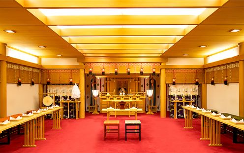 ホテル内にある、縁結びの神様で知られる出雲大社の祭神をまつった神殿出雲で、本格的な神前式がかないます。日本古来の伝統的な挙式は、雅楽の調べが響き渡り美しい作法が神秘的です。白無垢の花嫁姿は、ご両親やご親族からも好評なので人気です。また、「四柱神社」「深志神社」「護國神社」などの神社での神前式も可能ですのでお問合せください。