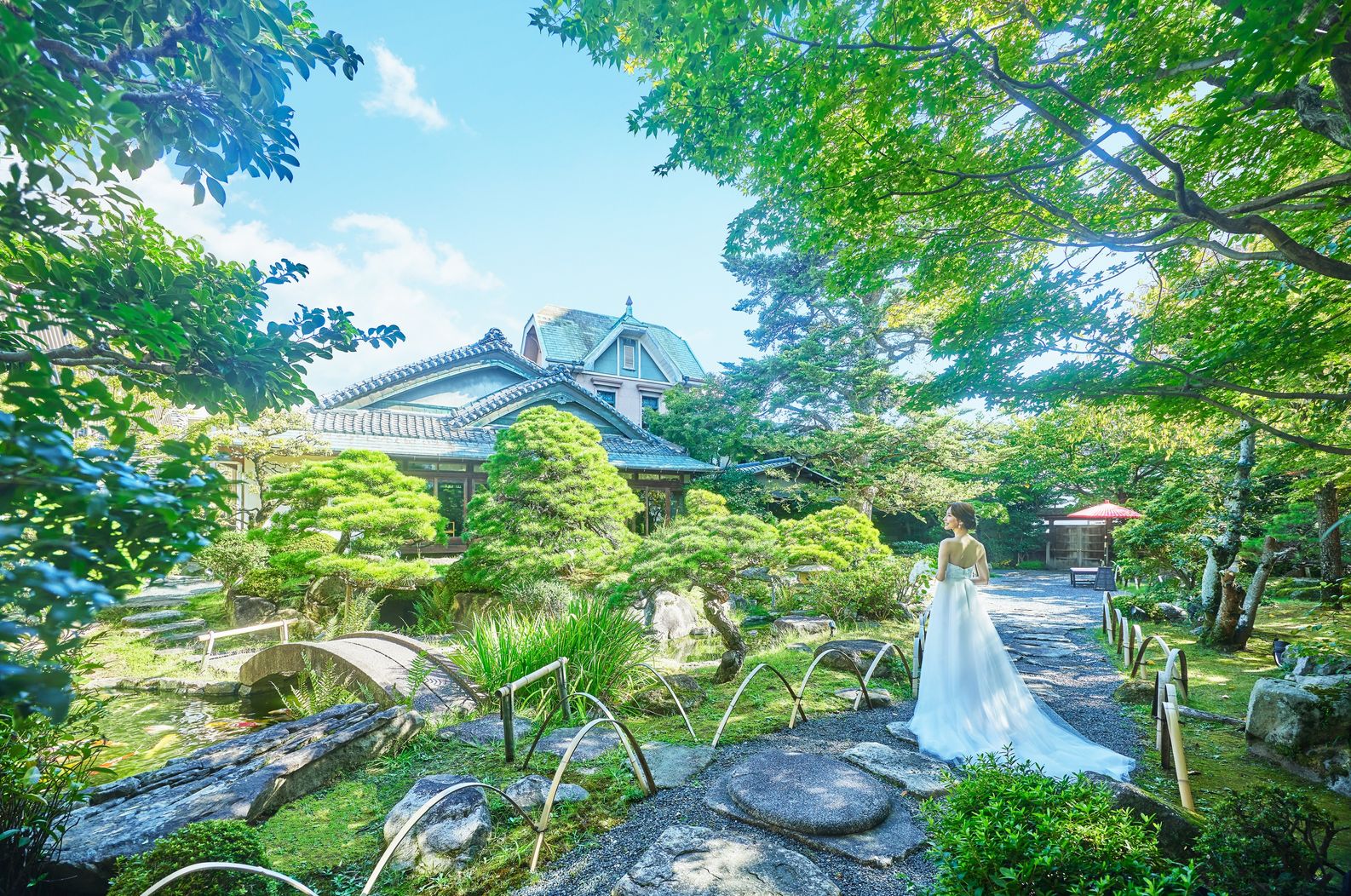 02.<日本庭園>樹齢400年のもみの木がそびえ立つ四季彩る庭園でゲストとふれあう時間を