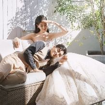 大きな窓からは自然光が入ってきて、緑の木々が見えるのがウエデイングドレスをいい具合に映えさせてくれるのでとても良かったです!