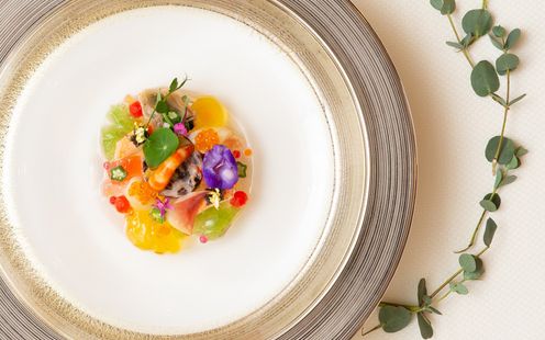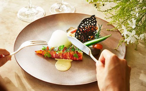 フランス料理最高の名誉の一つとされる「レ・ディシプル・ド・オーギュスト・エスコフィエ」称号授与された経歴を持つ統括料理長・飯塚純平氏が手掛ける料理は、幅広い年齢層のゲストに好評。和洋折衷料理、フランス料理から選べます。アートのような美しい一皿でゲストへ感動を届ける世界にたったひとつのオーダーメイドメニューもご用意していますのでお問合せください。