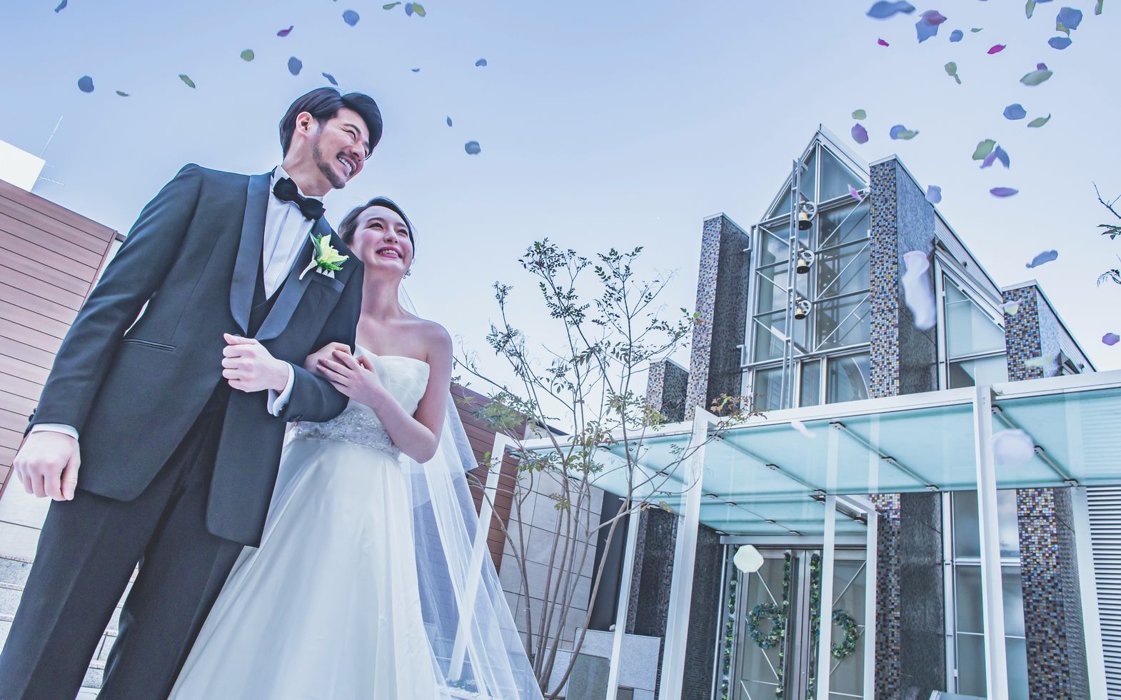 チャペルでの挙式後は目の前のガーデンテラスへ出て、青空の下、フラワーシャワーやブーケトスなど開放感いっぱいのアフターセレモニーが叶います。