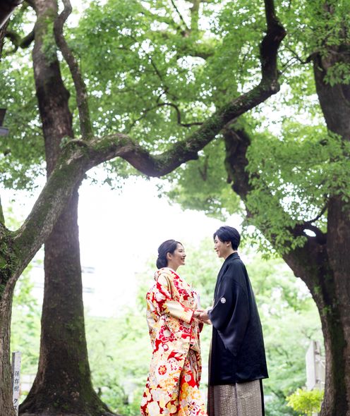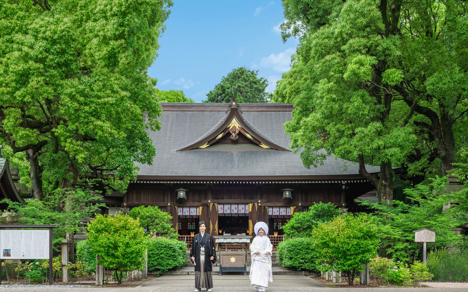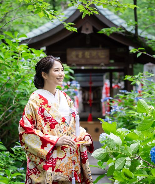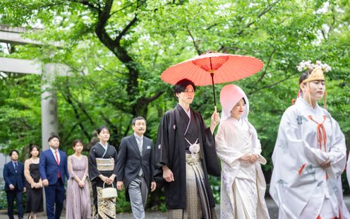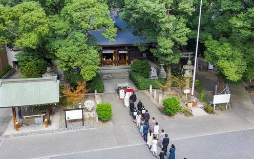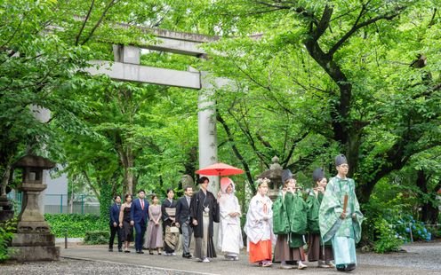 都心にありながら2000坪の緑豊かな神聖な杜に佇む格式高い神社。古式ゆかしい伝統の婚儀を