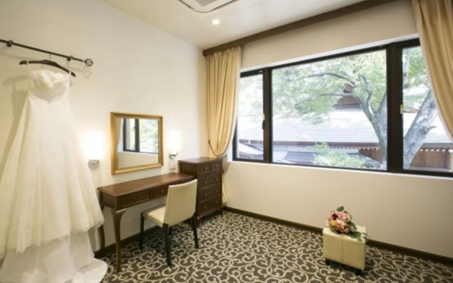 花嫁支度は、専用のブライズルームにて。完全個室なのでプライベート空間で落ち着いてお支度を進めていただけます。