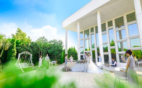 4,000坪もの敷地内には至る所に写真スポットがございます。白亜の大階段・ノーブルな大聖堂・緑眩しいガーデン・ラグジュアリーなバーカウンターなど、多彩なスペックを誇ります。