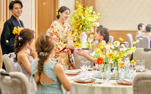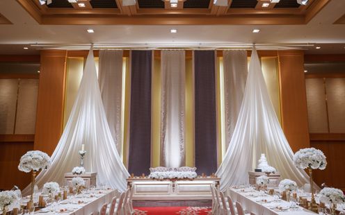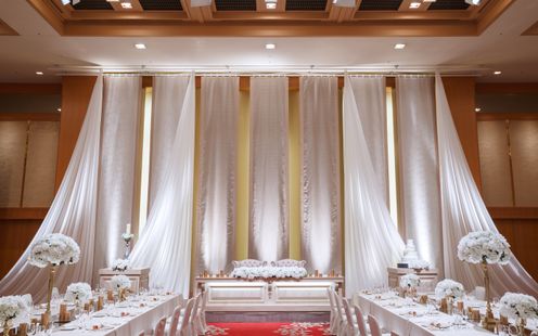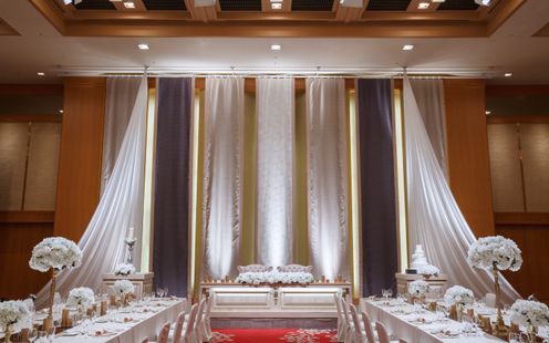 広々とした空間でおふたりらしいおもてなしとラグジュアリーな世界観を演出して、最高のレセプションが叶えられます。