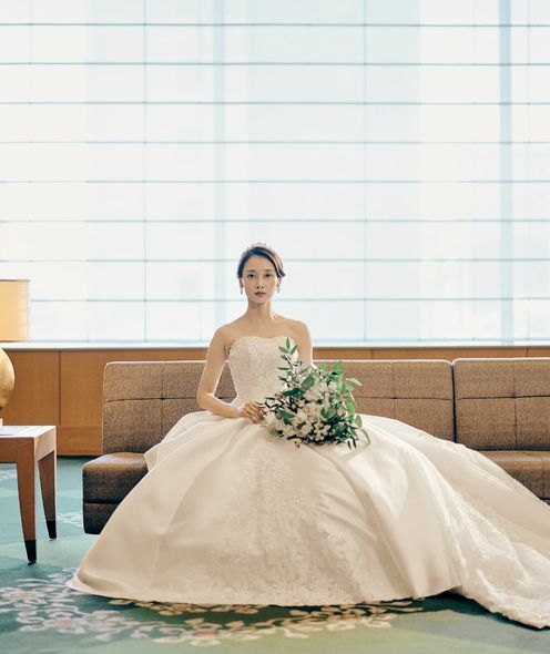 花嫁を象徴する色、花嫁をより一層際立たせる白をあしらった上品でエレガントなオークラらしい大人コーデ。ベーシックカラーを極める心地よい洗練された落ち着きのある空間で喜びに満ちた一日を。