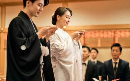 凛と張り詰める空気、みやびな音色に包まれて厳かな誓いを