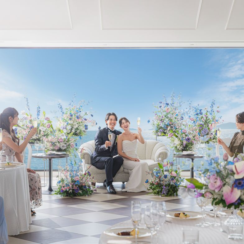 特徴 | 270度パノラマビュー*湖畔に佇むリゾートホテルで2泊3日スイートルームウエディング | 【約3000坪の敷地を独占】英国の街をモチーフにした非日常世界がウエディングの舞台に | 琵琶湖が望めるスカイホールやガーデン、船上セレモニーまで選べる多彩な挙式スタイル | 自然光が差し込む純白の会場と大正ロマンあふれる会場の2つから好みに合せて会場を選べる | 【1日2組限定】琵琶湖の絶景が祝福するリゾートホテルで 「招待される喜び」をゲストへ | |