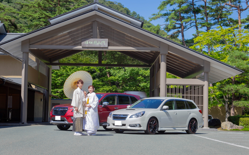 挙式の前日から訪れて家族だけのひとときをゆっくりお過ごしいただけるのもステイウエディングの魅力。新郎新婦へは披露宴を行うホテルの宿泊プレゼント、ゲストも特別価格での宿泊が可能です。全室マウントビューの客室でお寛ぎください。ホテル3館の湯めぐりを無料でお楽しみいただけます。敷地内のバラ園や庭園を散策するのもおすすめです。