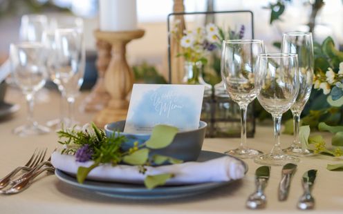 ご家族のみでのご会食にピッタリの会場。和やかな雰囲気と南部赤松を一望できる窓からは自然の光が差し込み、アットホームな空間へと導きます。窓側に新郎新婦様おふたりが座るレイアウトもおすすめです。