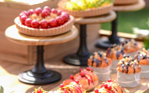 ふたりらしい「おもてなし」を表現できる料理は、結婚式の中でもとても重要。季節を表現した繊細で美しい一皿が自慢の和洋折衷料理は幅広い年代のゲストにお慶びいただけます。また、日本各地から厳選したその時の最高の旬の味と素材を最大限に活かした日本料理。佳松園での披露宴でしか召し上がることができない至極のプレミアムコース、シェフと対話することによって生まれる世界でひとつだけのオーダーメイドコースなど多彩なコースの中からお選びいただけます。また、佳松園での披露宴限定の特別料理はその時期の旬の食材をふんだんに使用した料理長オリジナルコースで、毎回内容が異なります。ウエディングケーキはおふたりのご希望のデザインで創り上げることが可能です。ゲストの顔ぶれを思い浮かべながら楽しくセレクトしてください。