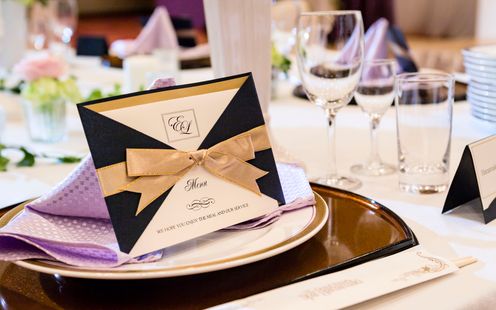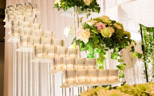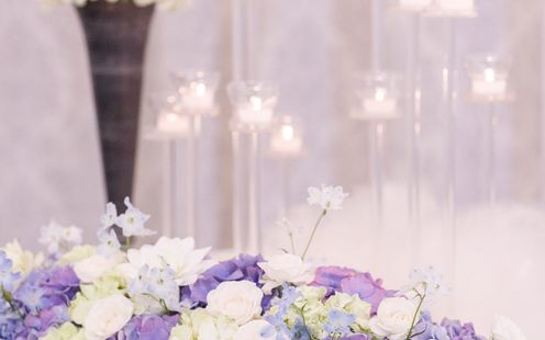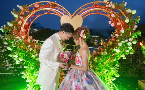 奥行きのある空間を贅沢に使い、最新の映像技術を駆使した大迫力のプロジェクションマッピングでゲストをおもてなしできます。シンプルなコーディネートから豪華で華やかなものまで、おふたりらしさを存分に引き出すことができます。