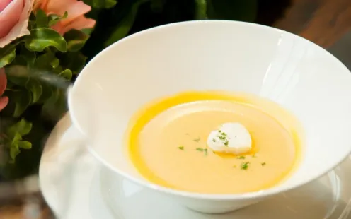 ふたりの希望に沿って一組ごとにお作りするオーダーメニュー。こだわりの食材から予算まできめ細かにリクエストを承ります。例えば、両親が栽培している野菜や出身地の特産品など持込み食材をメニューに取り入れることも可能です。京都大学内〈レストラン ラ・トゥール〉と提携しており、多数の料理コンクールで入賞を重ねた凄腕シェフが手掛ける巧みな技・味わいをお愉しみいただけます。。当日はシェフが併設のキッチンで進行に合わせて調理するため、ベストタイミングで美味しい一皿を提供いたします。