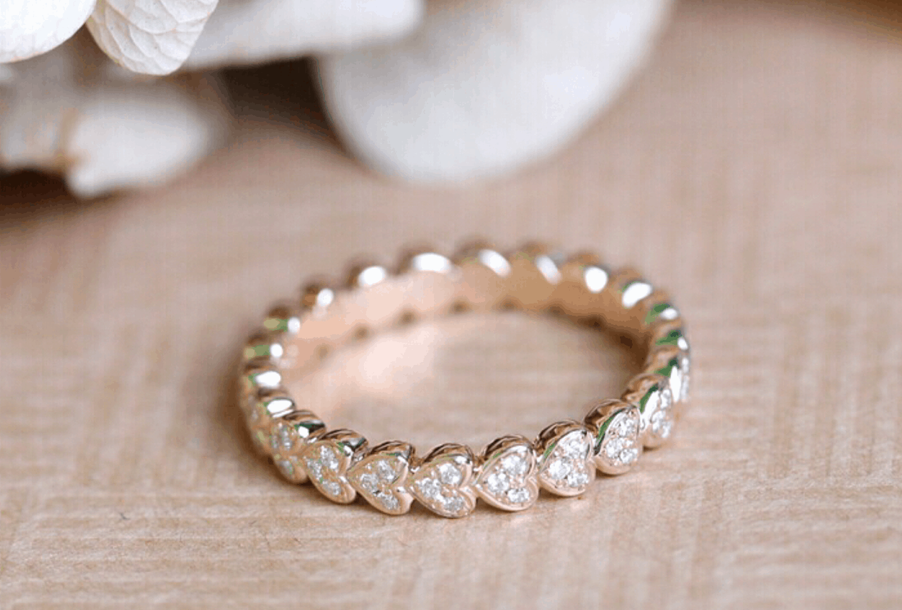 エタニティリングが1周すべてハートのパーツで組み上げられた、心くすぐるデザイン♡とっても愛らしいデザインで、思わず彼におねだりしたくなっちゃう♡