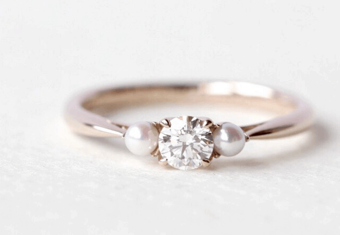 丸みが愛らしいエンゲージリング。フォーマルなシーンにも身に着けやすいように、とパールをあしらうご要望があり、アレンジされた特別な婚約指輪です。