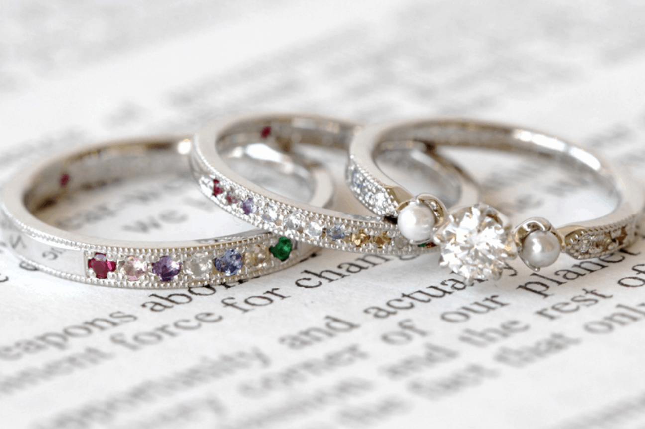 こんな風に、カラーストーンやパールを使って、オリジナルリングを仕上げてもらう事も出来ちゃうんです!