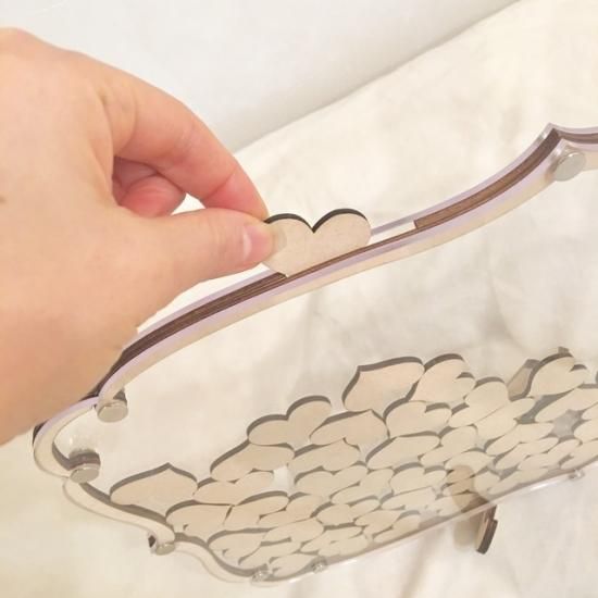 ハートドロップスとは、ハート型や星形などの木製のチップにゲストが名前やメッセージを書き込んで、フレームに入れるゲストも参加できる演出です。