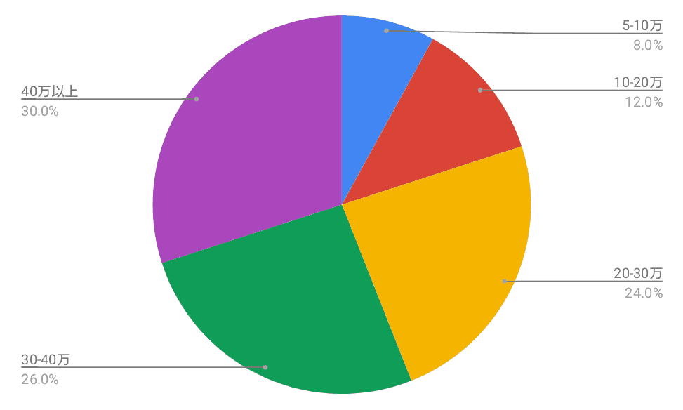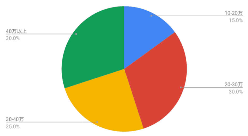 なんと、20-30万と40万以上の方が同着で30.0%と一番多い結果に!
