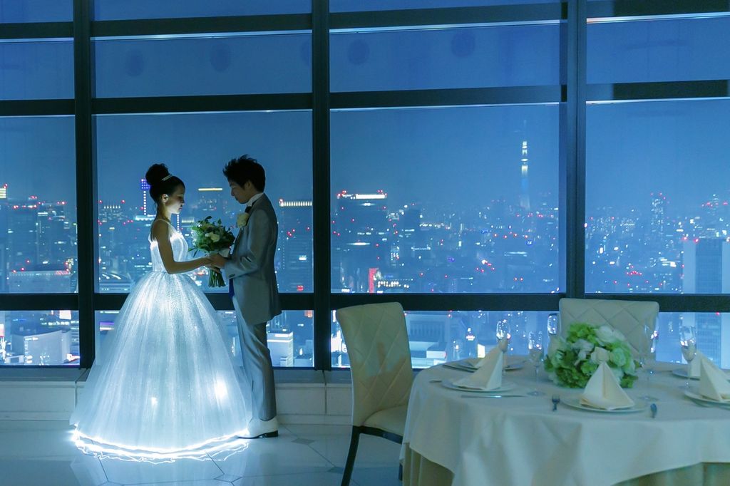 新郎が花嫁さんのために用意した光るウェディングドレス♡